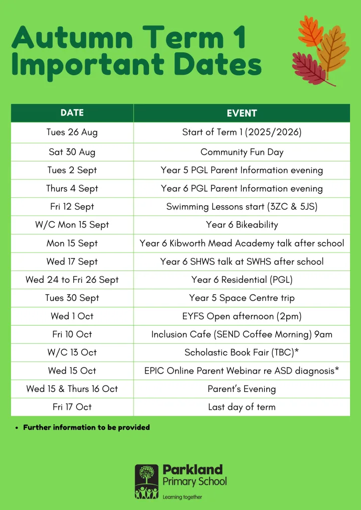 Autumn Term 1 Important Dates